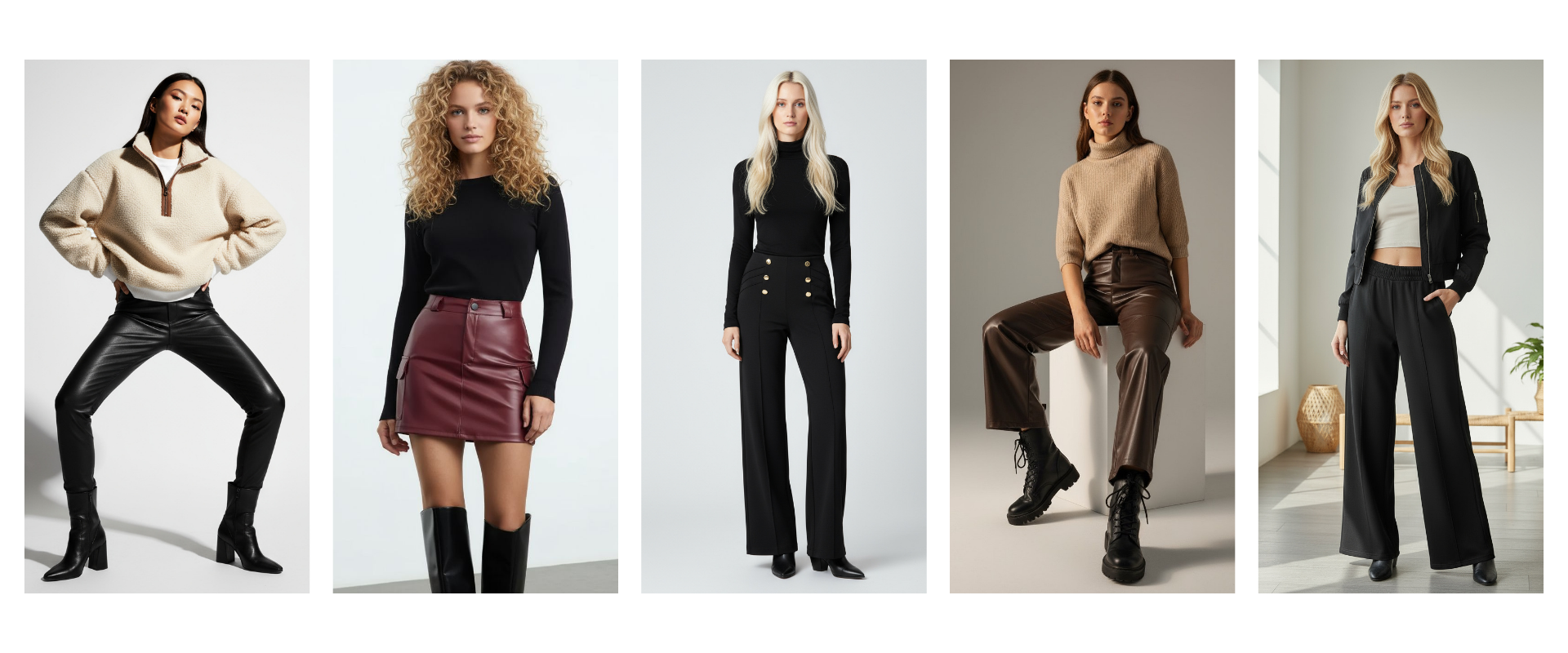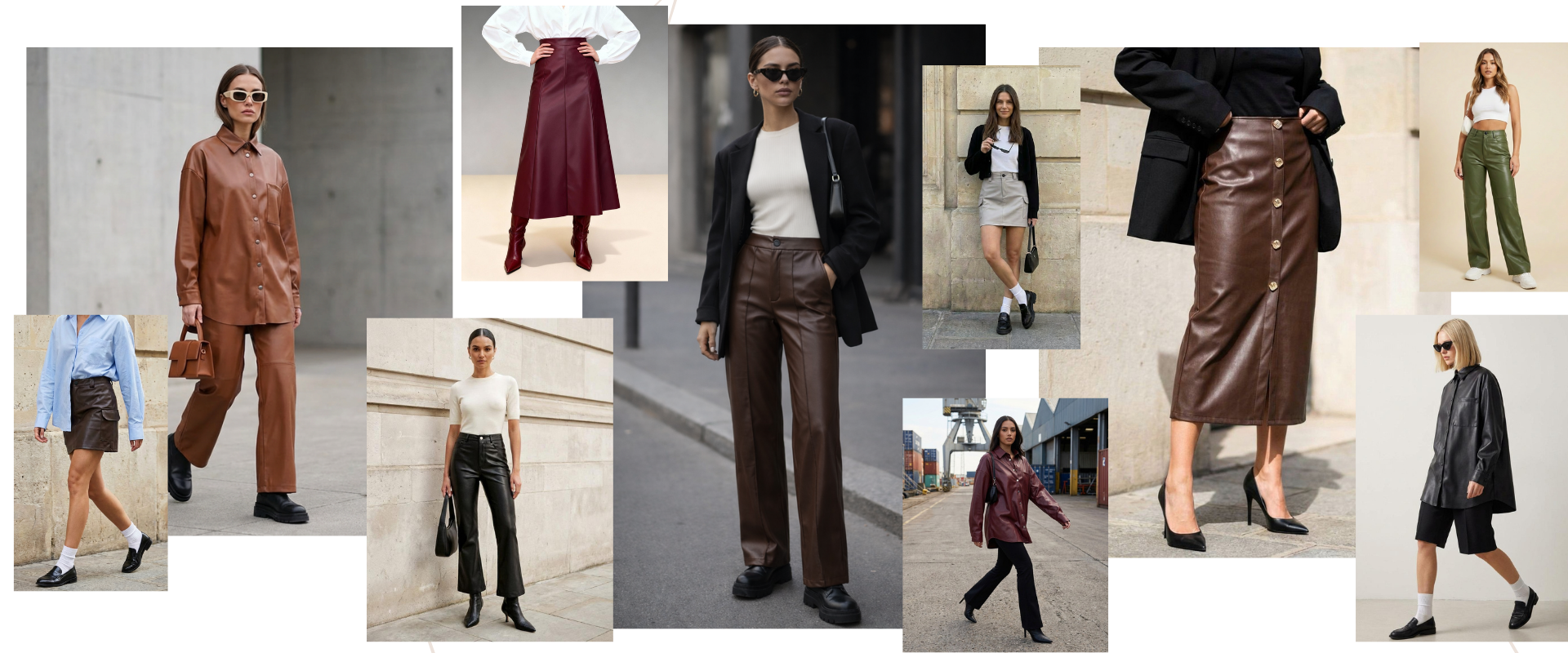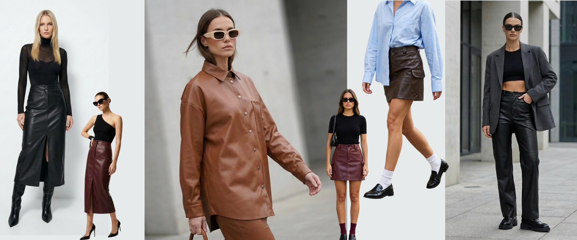 Relaxed Boru Paça Dikiş Detaylı Deri Pantolon