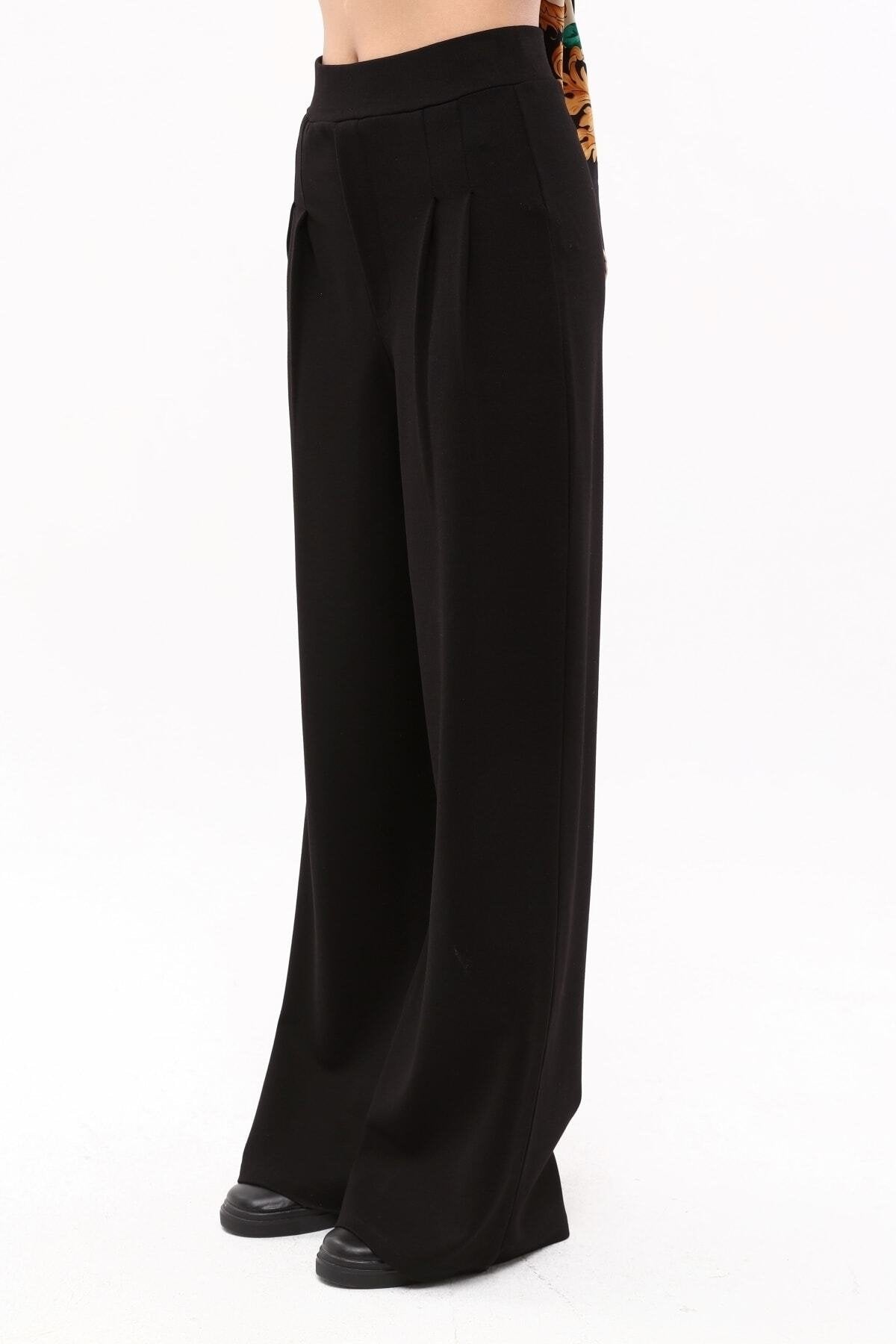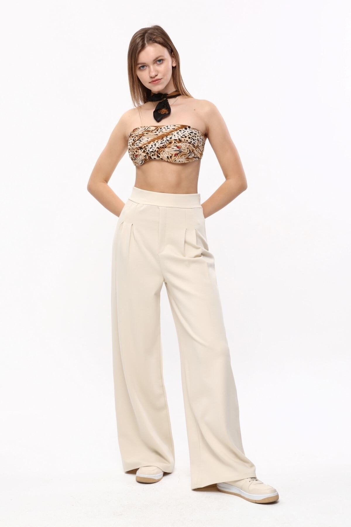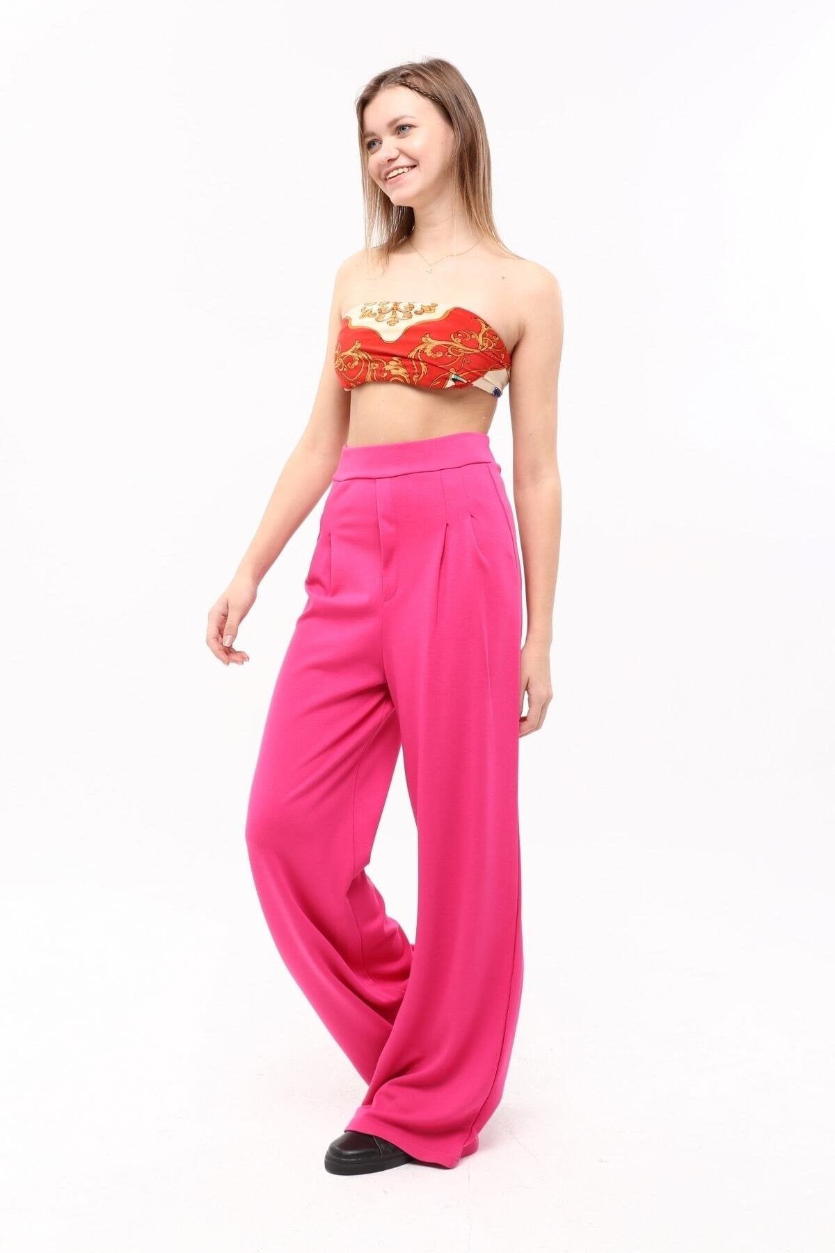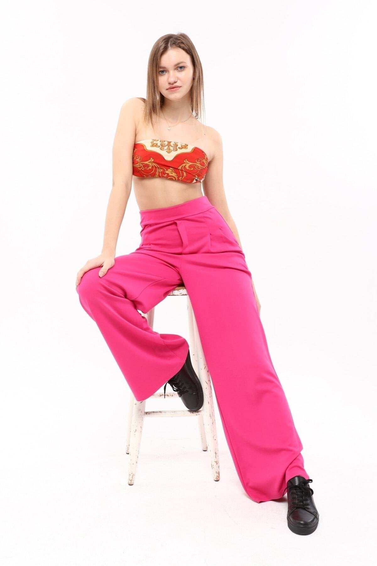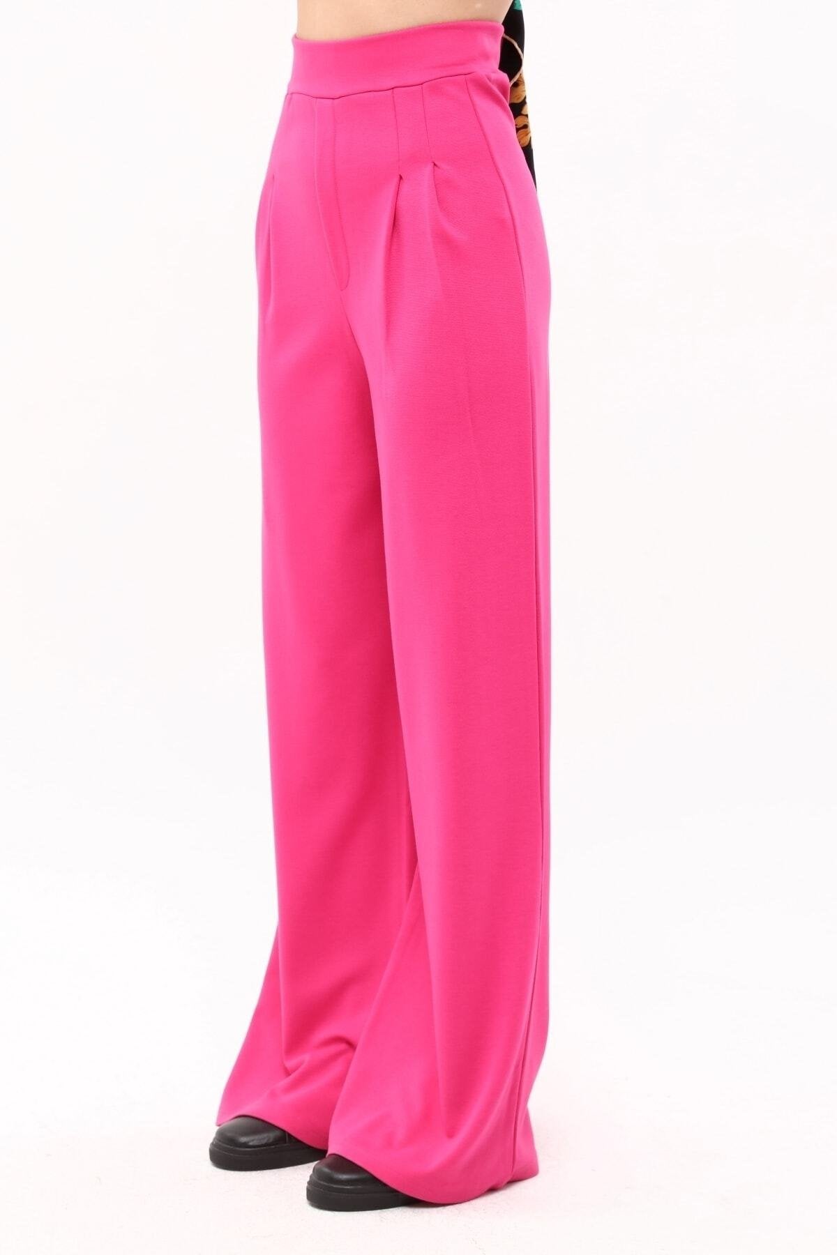 Fuşya Pileli Bol Paça Yüksek Bel Pantolon Tayt