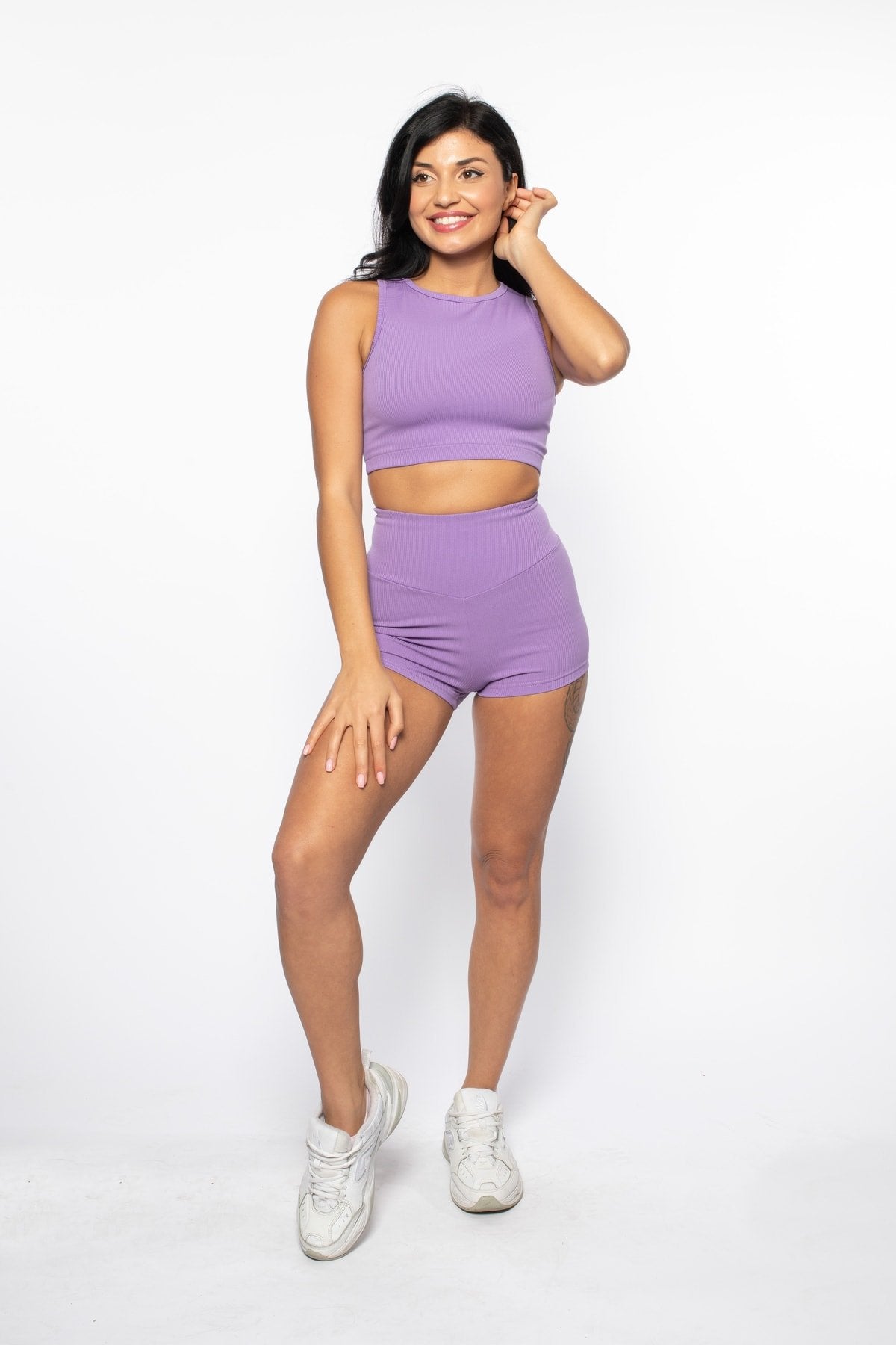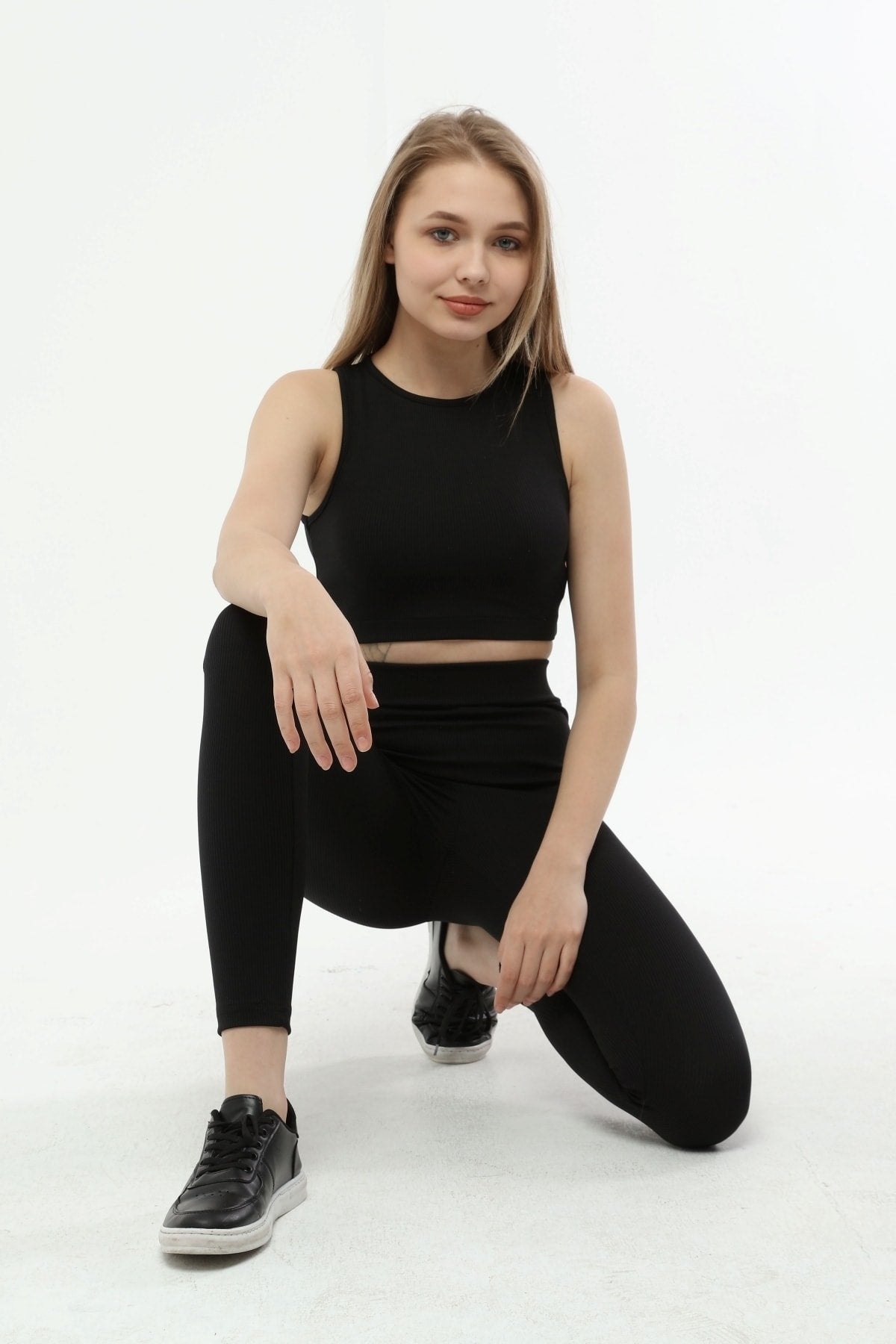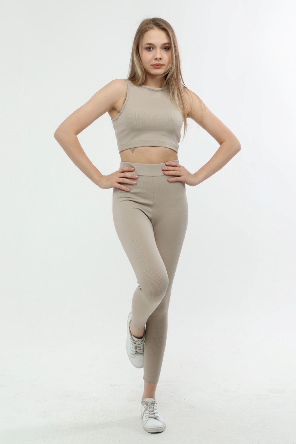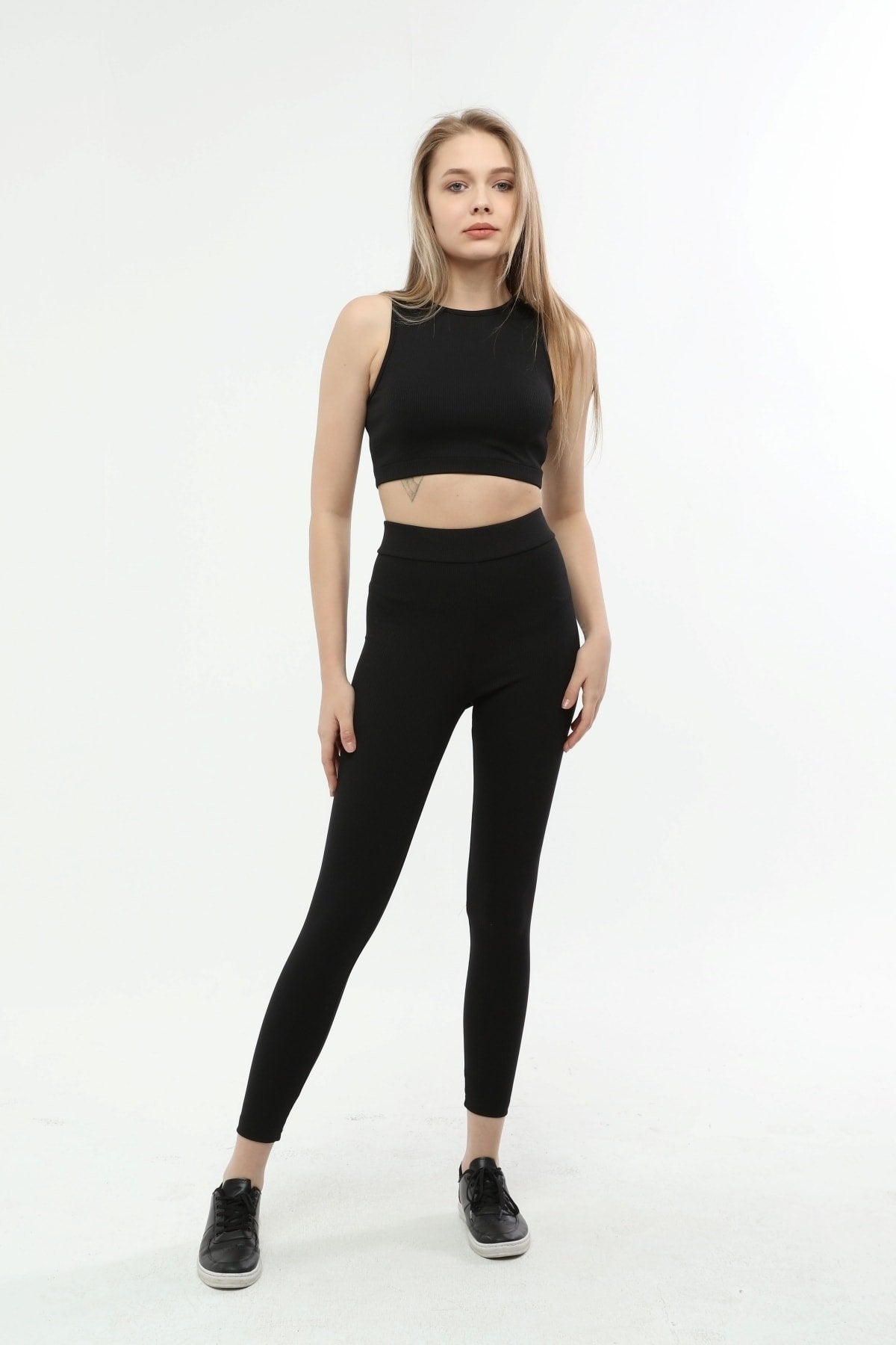 Kumaş içeriği: %83 Polyester %17 Elastan; 30 derecede yıkanır, ütü yapılmaz; Modelin üzerindeki beden S/36’dır.