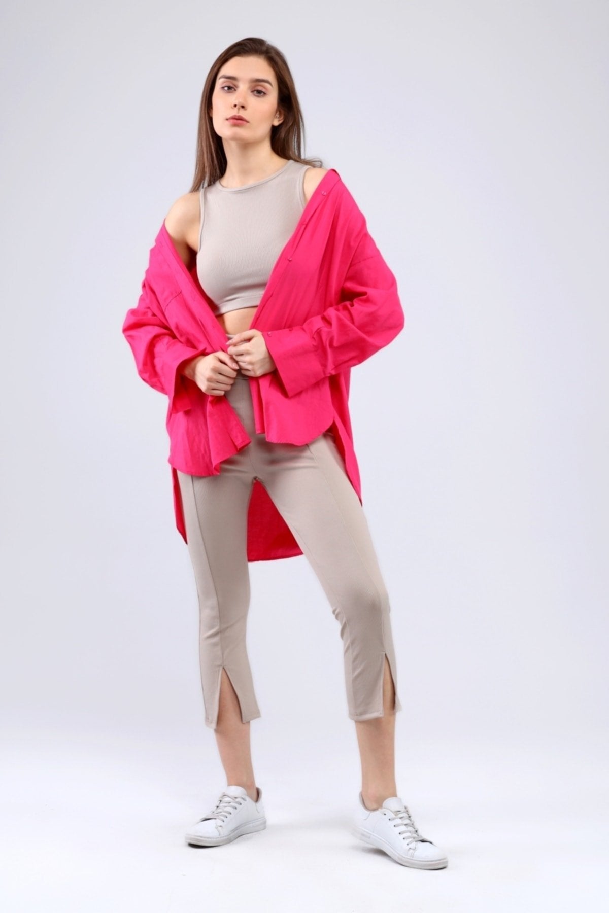 Kumaş içeriği: %83 Polyester %17 Elastan; İç bacak boyu 60 cm, Yırtmaç 15 cm; 30 derecede yıkanır, ütü yapılmaz; Modelin üzerindeki beden M/38’dir.