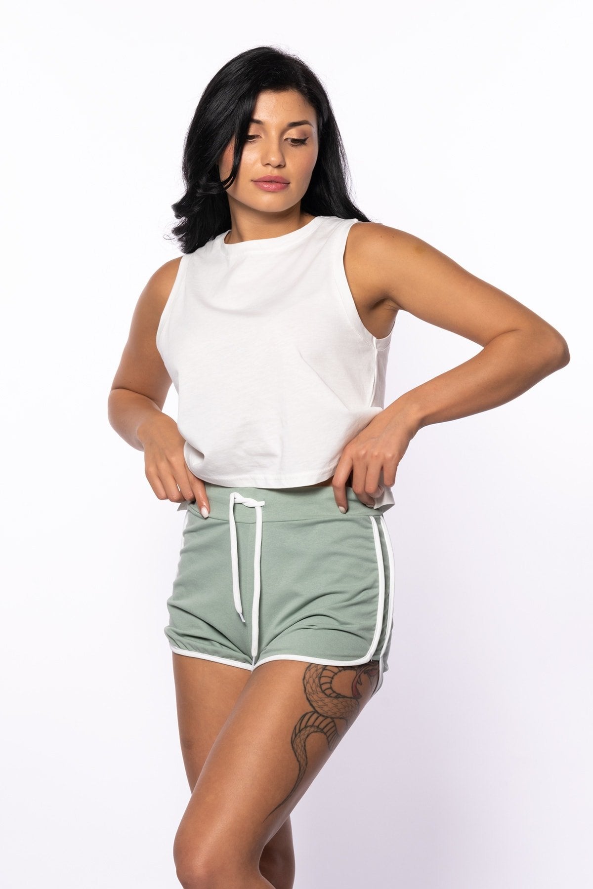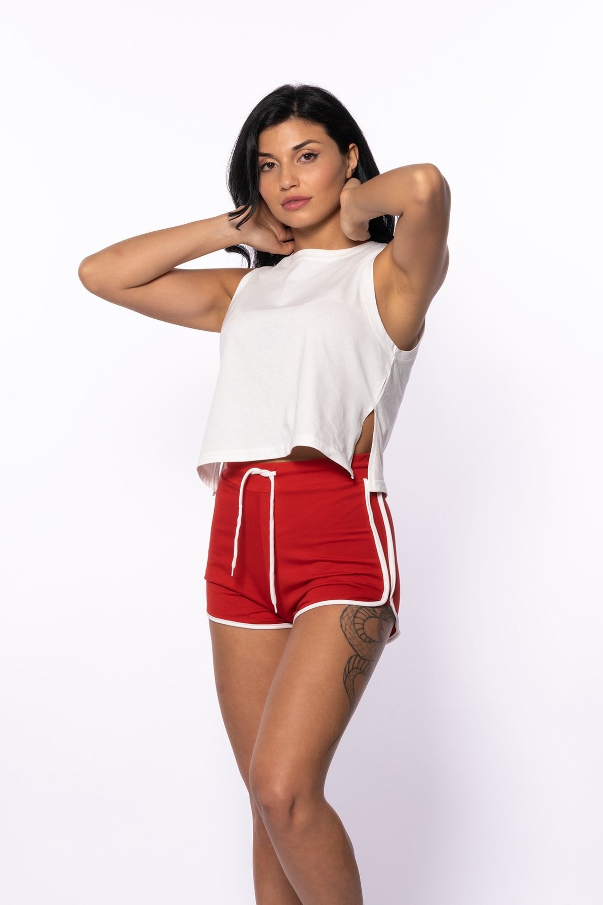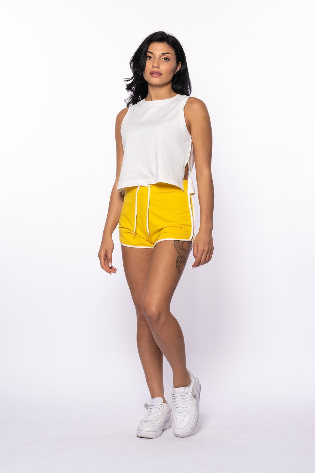 Örme kumaş yapısı ile konforlu bir kullanım sunar ve hareket özgürlüğü sağlar; %70 pamuk içeriği sayesinde cildinize nefes aldırır ve gün boyu rahatlık hissi verir; %22 polyester karışımı, dayanıklılığı artırarak şortunuzu uzun süreli kullanım için ideal kılar; %8 elastan eklenmesi, esneklik kazandırarak vücut hatlarınıza mükemmel uyum sağlar; Mini boy tasarımı ile modern ve şık bir görünüm sunarken, trend stilinizi yansıtır; İki iplik şerit detayı, şortunuza dinamik ve canlı bir dokunuş katarken stilinizi öne çıkarır;