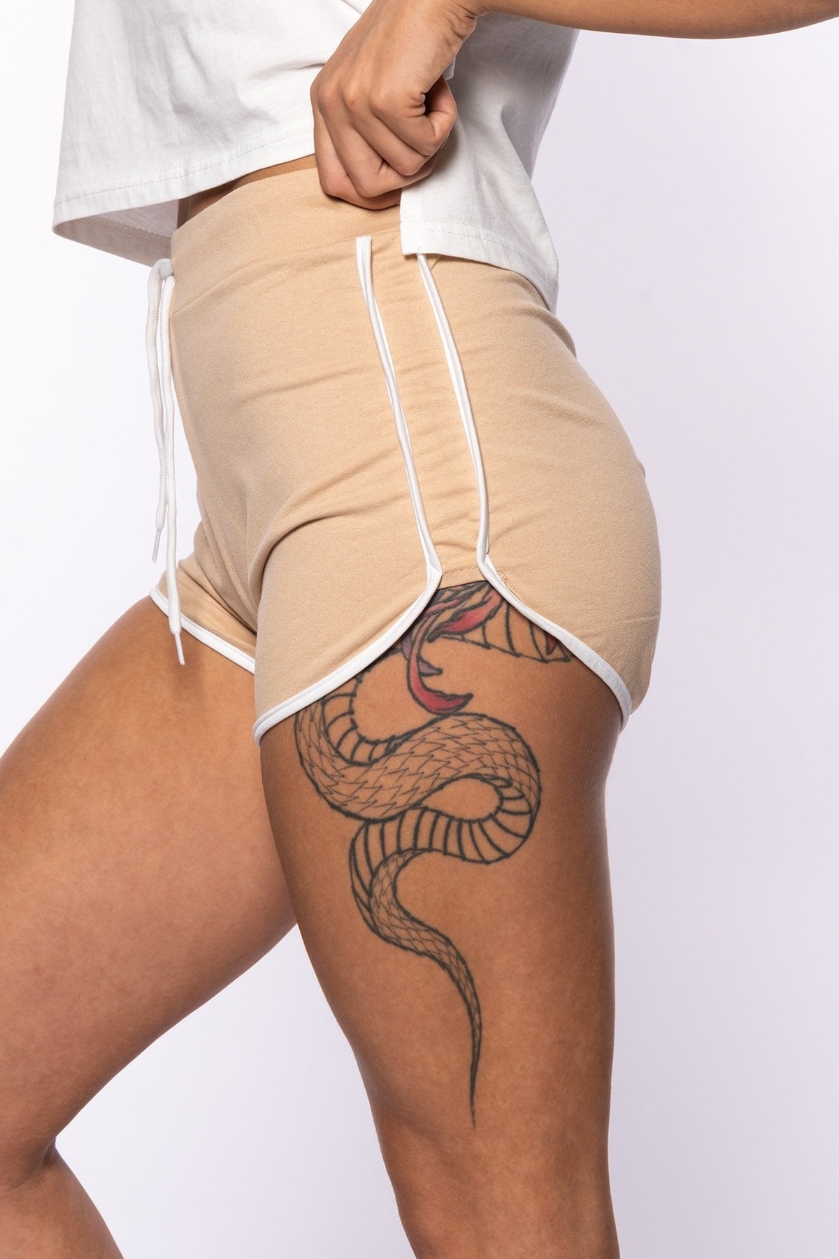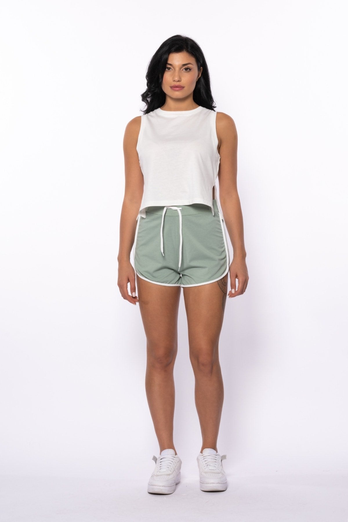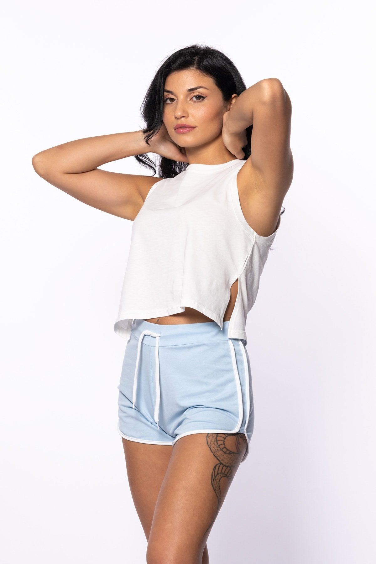 Örme kumaş yapısı ile konforlu bir kullanım sunar ve hareket özgürlüğü sağlar; %70 pamuk içeriği sayesinde cildinize nefes aldırır ve gün boyu rahatlık hissi verir; %22 polyester karışımı, dayanıklılığı artırarak şortunuzu uzun süreli kullanım için ideal kılar; %8 elastan eklenmesi, esneklik kazandırarak vücut hatlarınıza mükemmel uyum sağlar; Mini boy tasarımı ile modern ve şık bir görünüm sunarken, trend stilinizi yansıtır; İki iplik şerit detayı, şortunuza dinamik ve canlı bir dokunuş katarken stilinizi öne çıkarır;