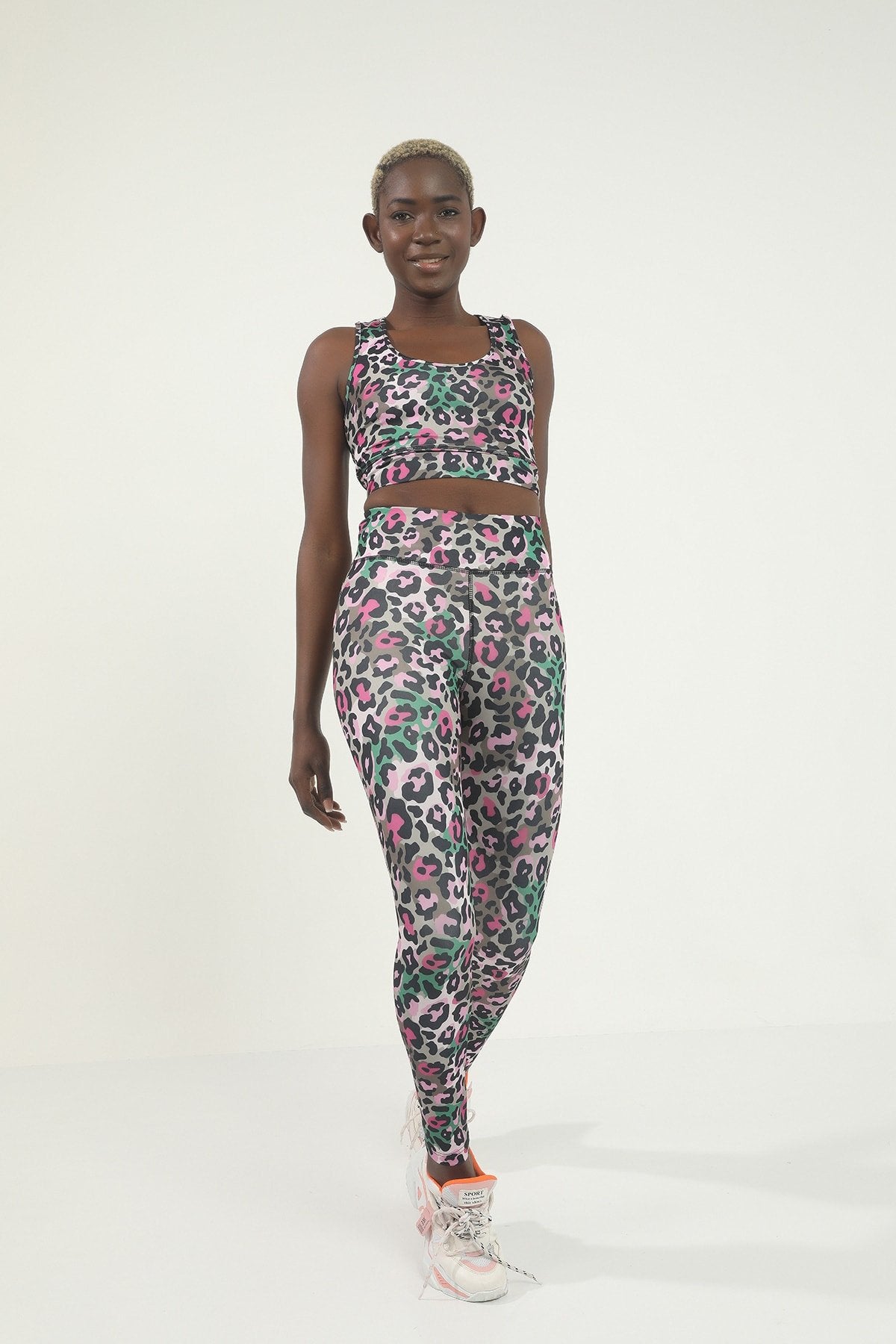 Mavi Mixed Desen Dijital Baskılı Yüksek Bel Toparlayıcı Biker Tayt