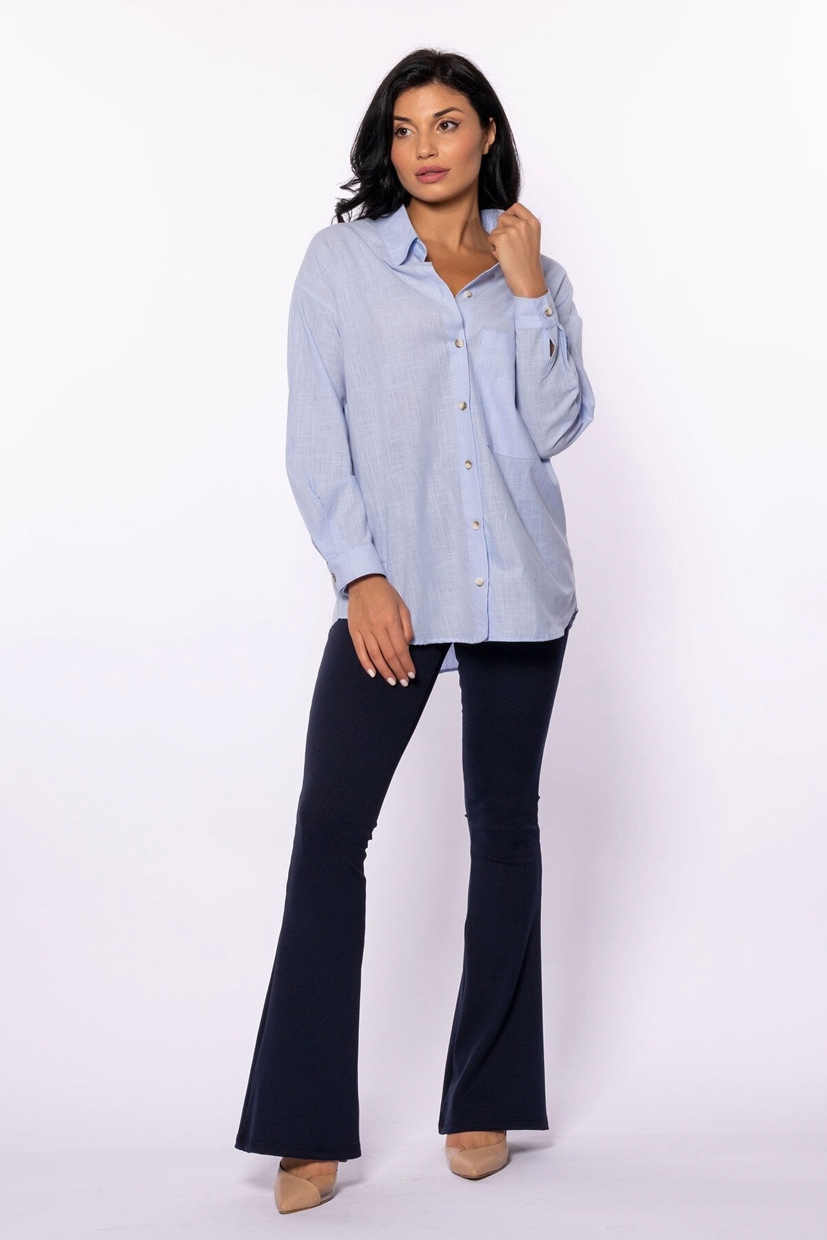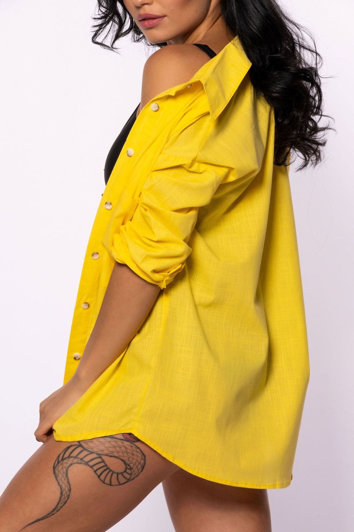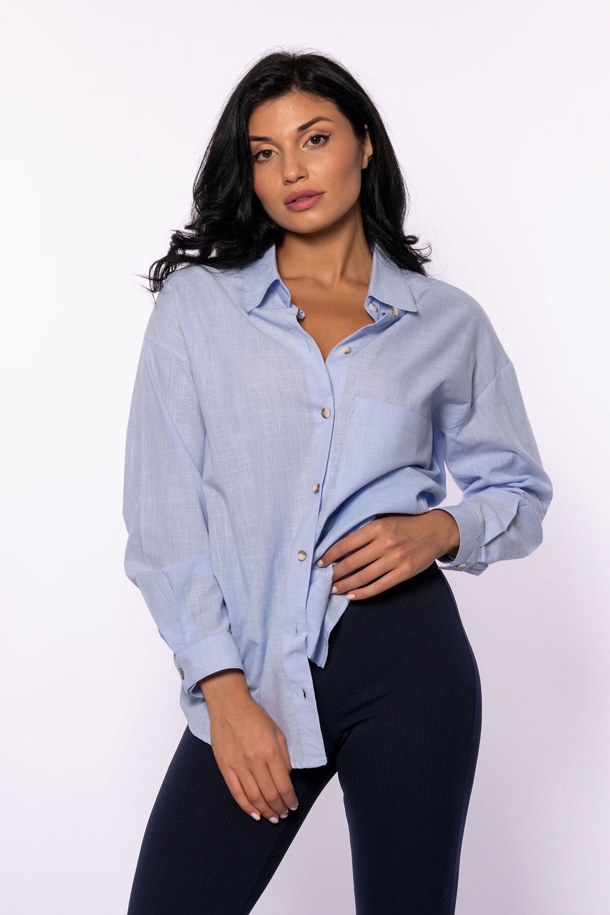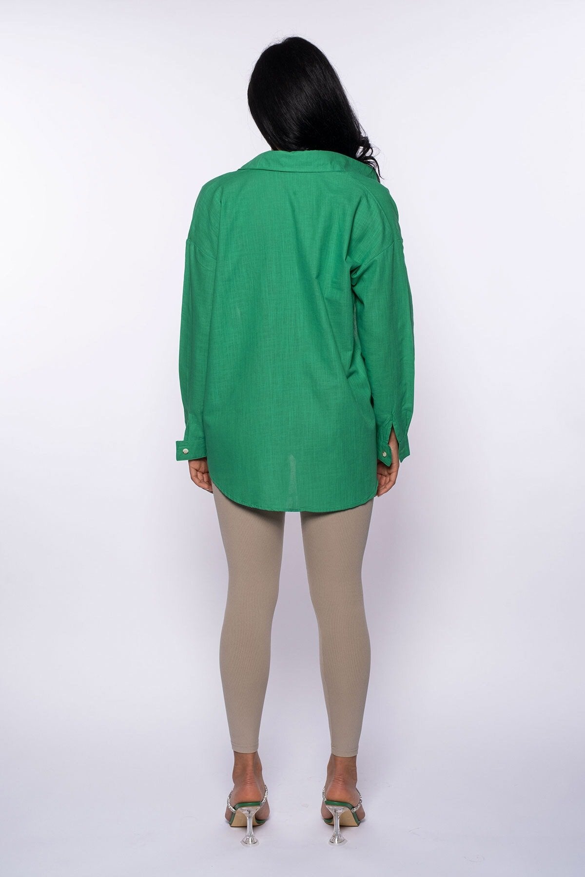 Flamlı kumaş yapısı ile dikkat çeken bu gömlek, trend bir görünüm sunar ve günlük kullanımda rahatlık sağlar; Oversize kalıbı sayesinde modern ve şık bir tarz yaratırken, hareket özgürlüğü de sunar; Uzun boy tasarımı ile hem rahatlık hem de şıklığı bir arada sunarak, farklı kombinlerle uyum sağlar; Keten karışımlı materyali sayesinde hafif ve nefes alabilen bir yapıya sahiptir, sıcak yaz günlerinde serinlik hissi verir; Düğmeli kapama şekli pratik kullanım imkanı tanırken, gömleğin formunu korumasına yardımcı olur;