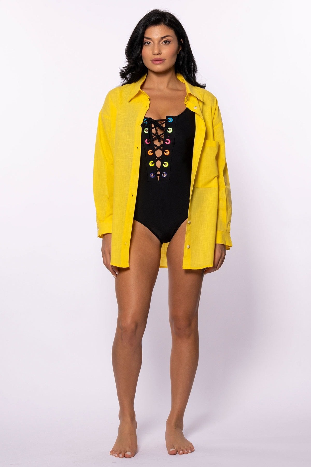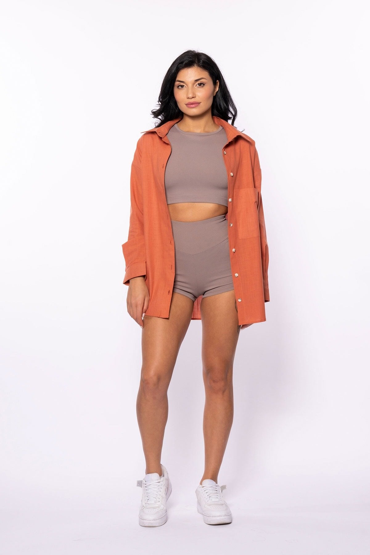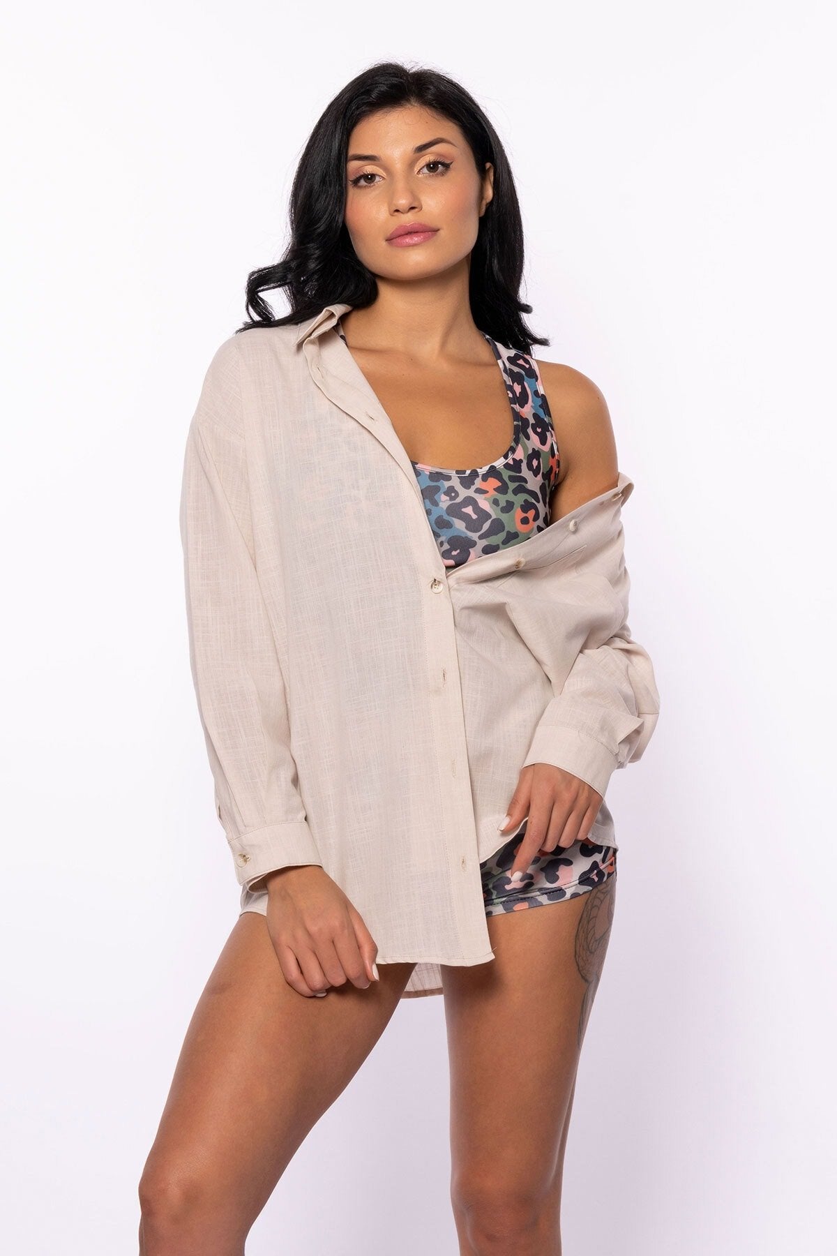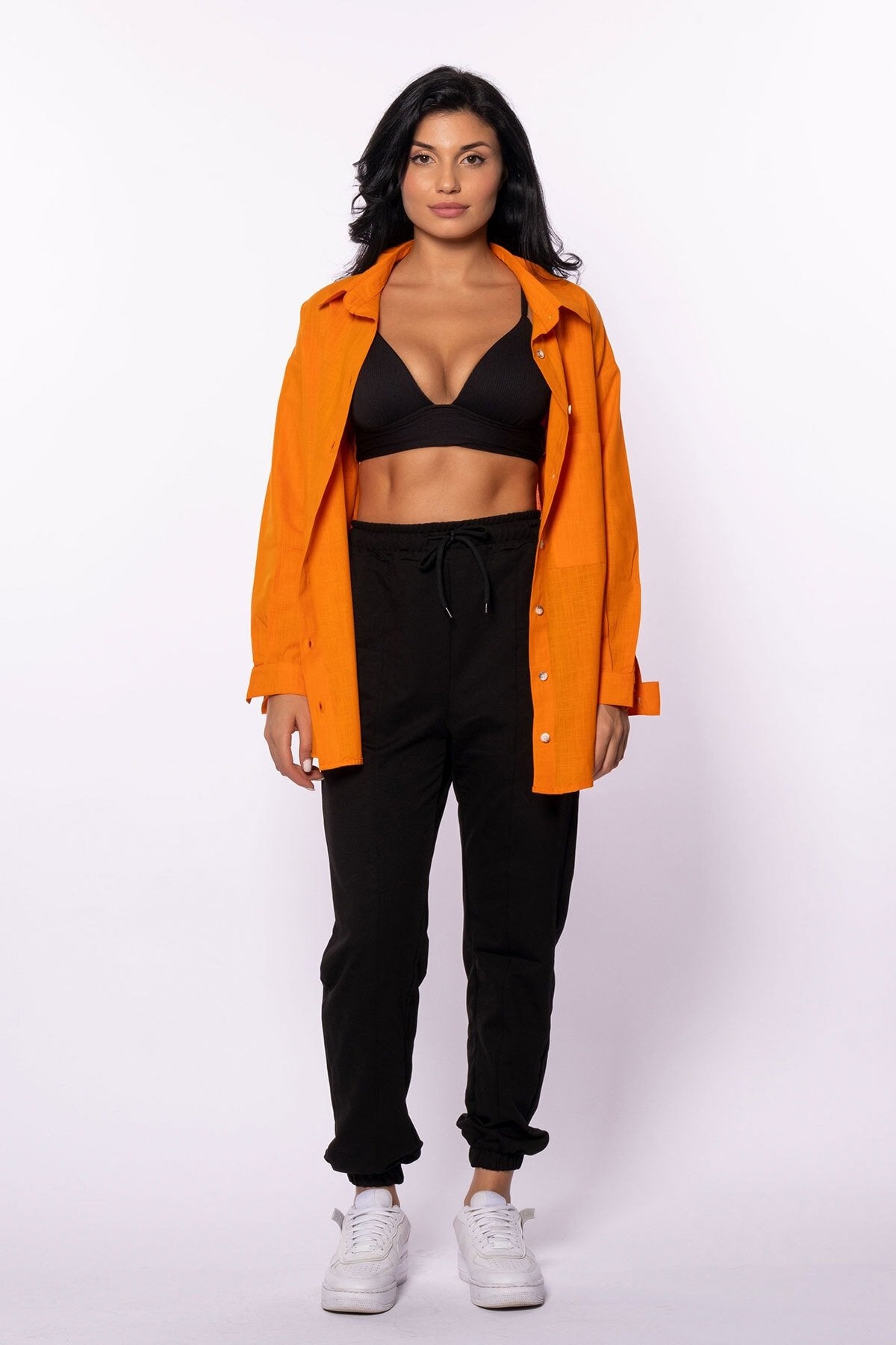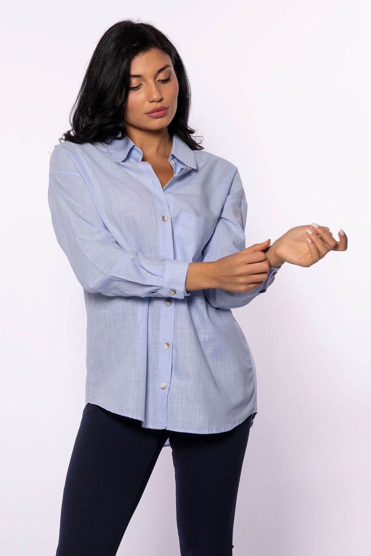 Flamlı kumaş yapısı ile dikkat çeken bu gömlek, trend bir görünüm sunar ve günlük kullanımda rahatlık sağlar; Oversize kalıbı sayesinde modern ve şık bir tarz yaratırken, hareket özgürlüğü de sunar; Uzun boy tasarımı ile hem rahatlık hem de şıklığı bir arada sunarak, farklı kombinlerle uyum sağlar; Keten karışımlı materyali sayesinde hafif ve nefes alabilen bir yapıya sahiptir, sıcak yaz günlerinde serinlik hissi verir; Düğmeli kapama şekli pratik kullanım imkanı tanırken, gömleğin formunu korumasına yardımcı olur;