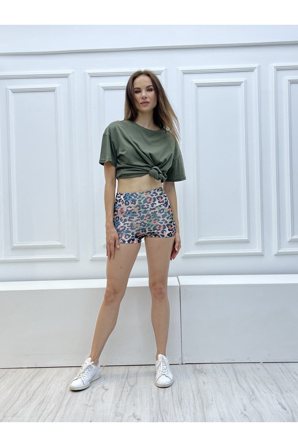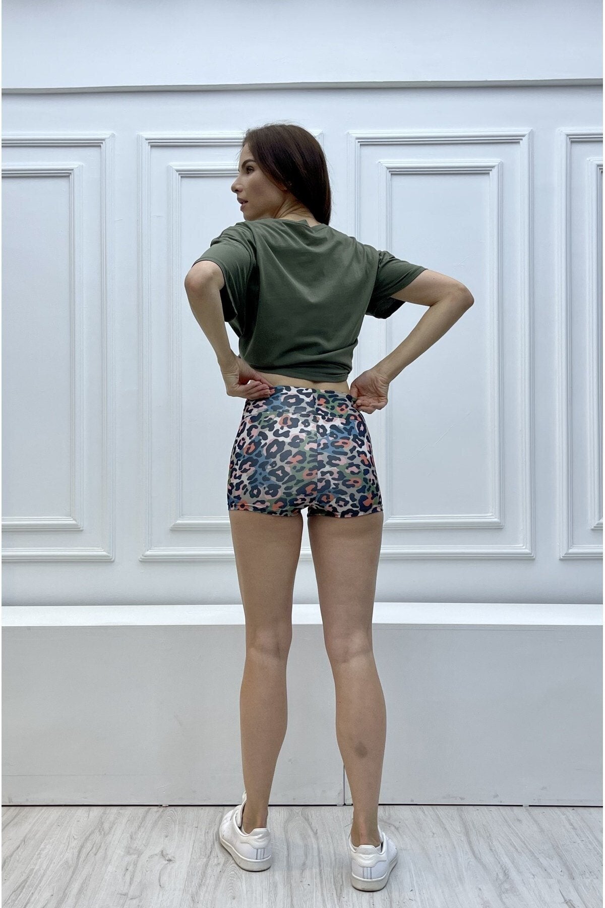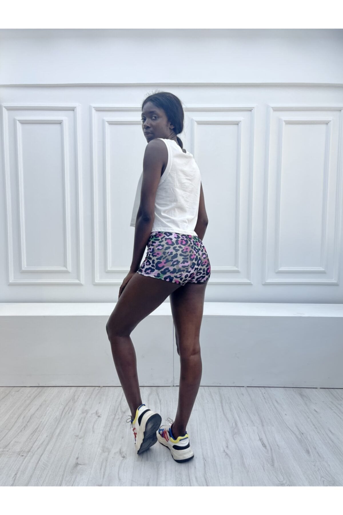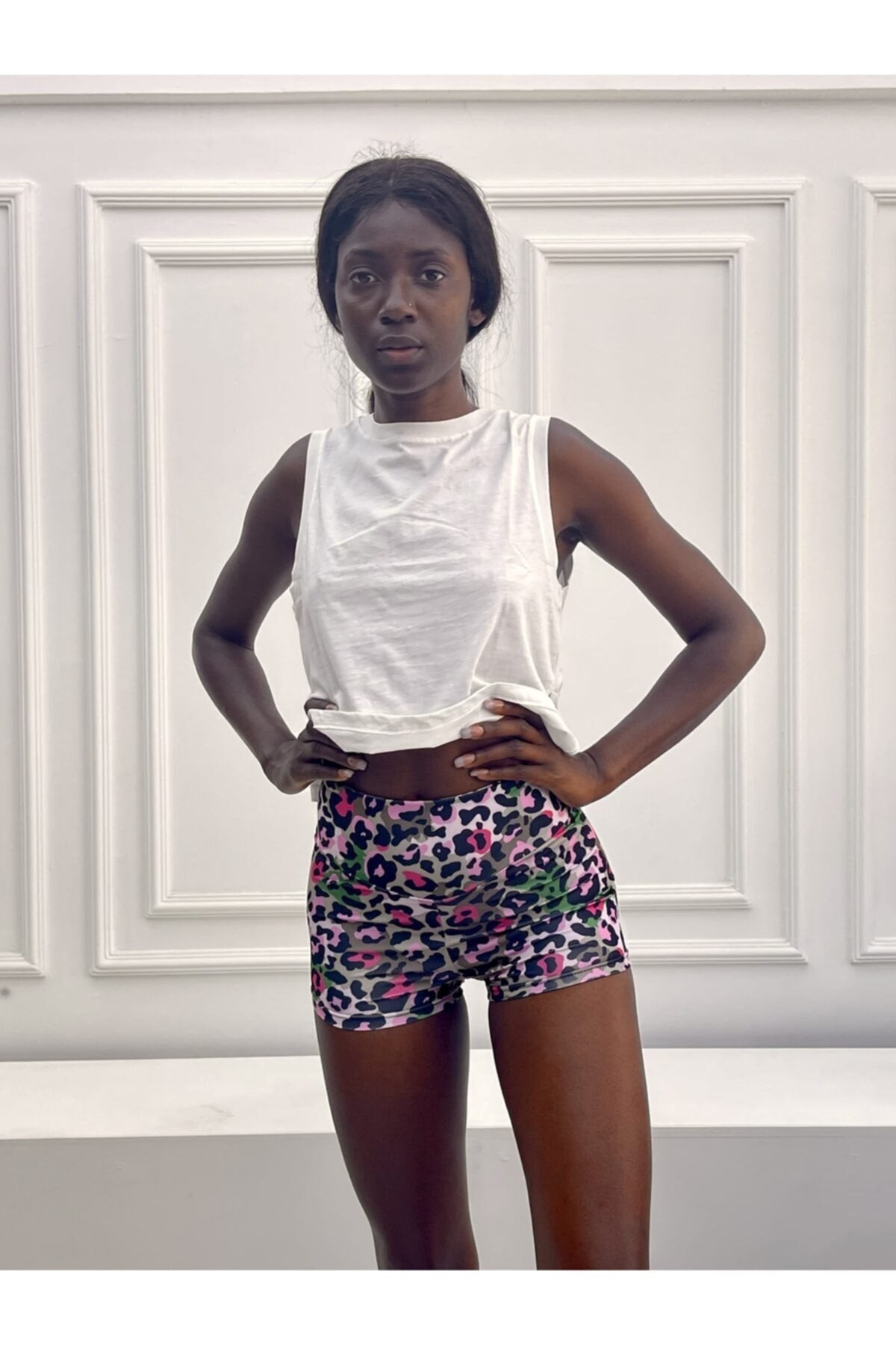 Pembe Leopar Desen Dijital Baskılı Mini Sporcu Şort