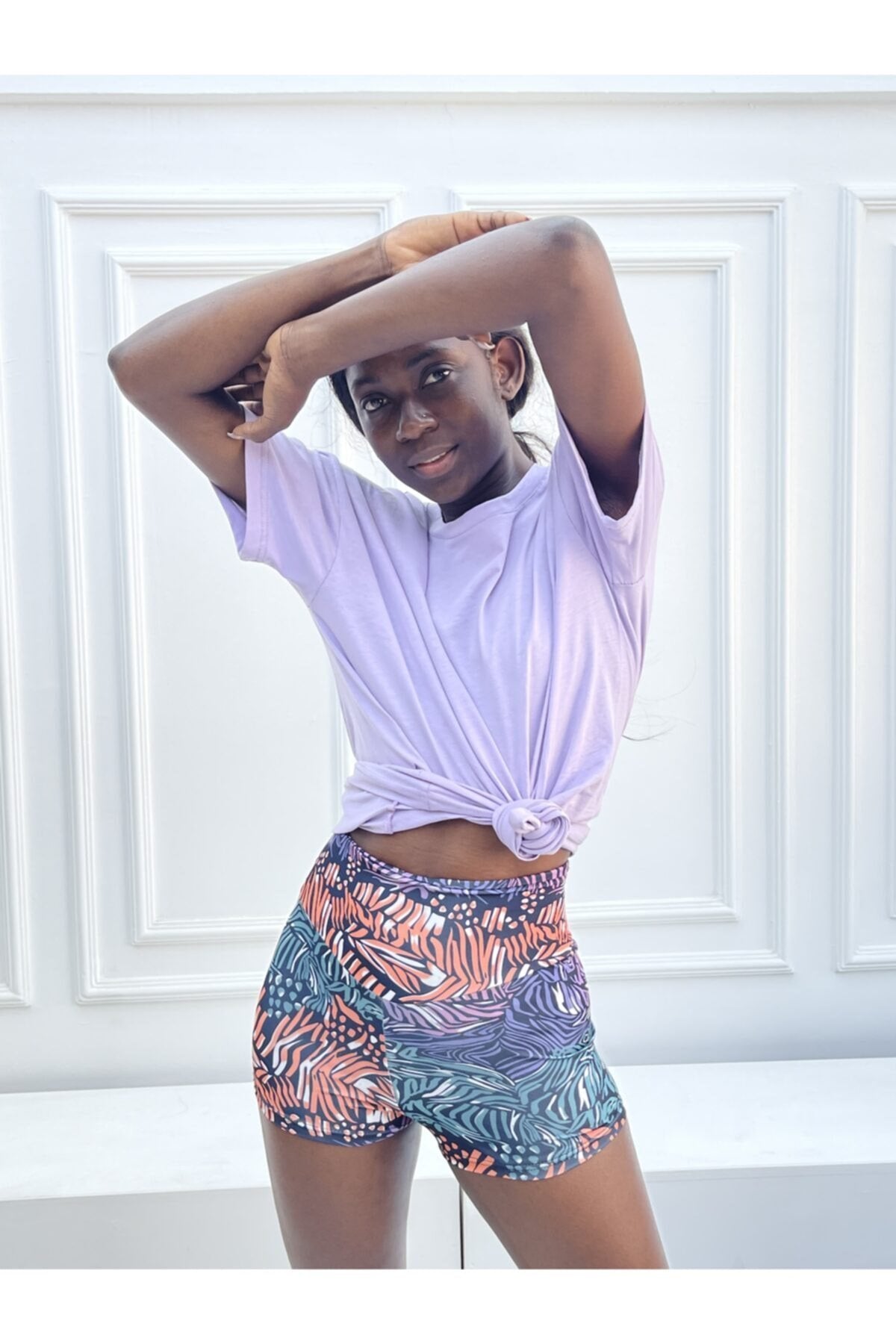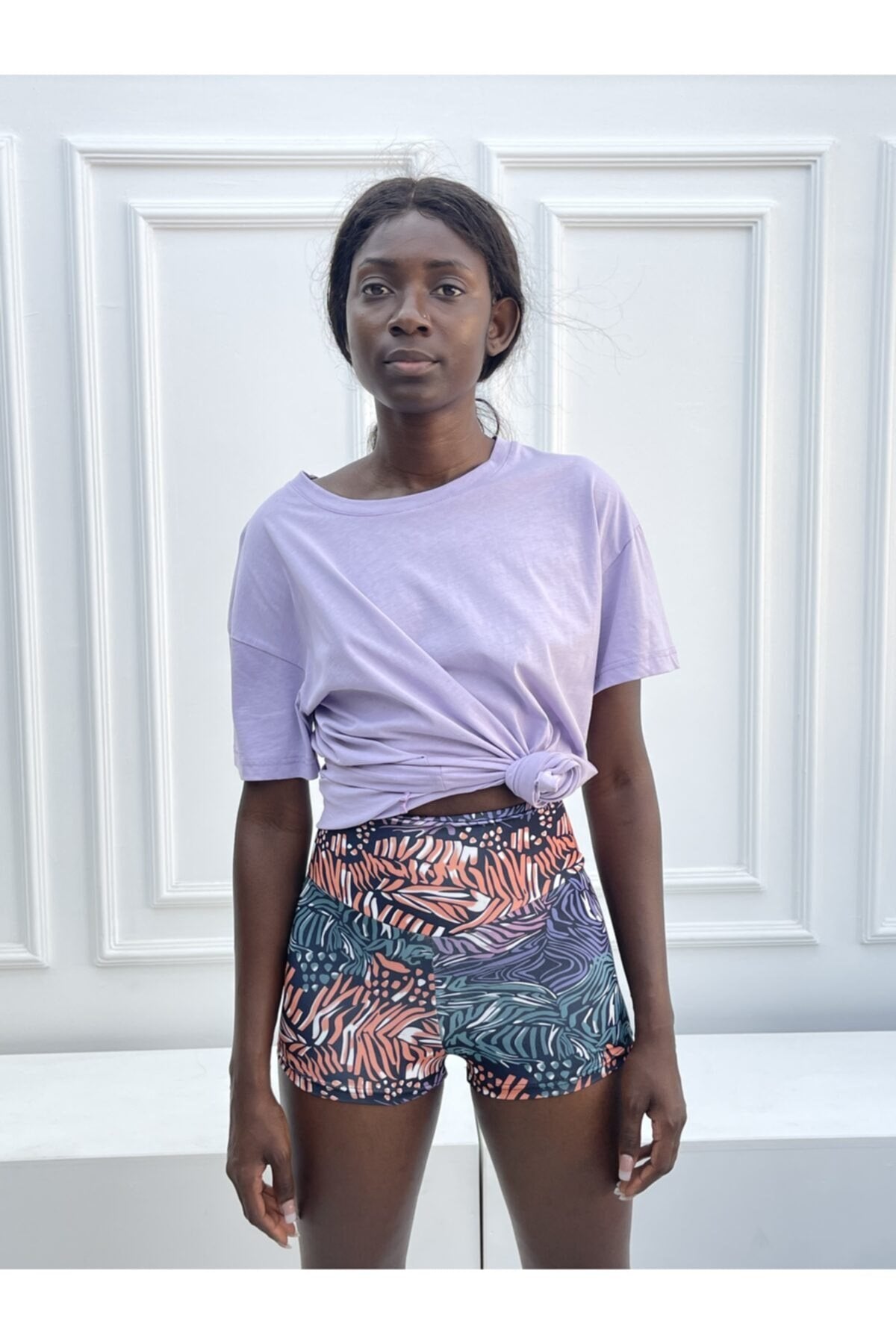 - Örme kumaş yapısı ile konforlu bir kullanım sunar ve hareket özgürlüğünüzü kısıtlamaz; - Mini boy tasarımı sayesinde yaz aylarında serin ve rahat bir deneyim sağlar; - Yüksek bel kesimi ile vücut hatlarınıza mükemmel uyum sağlar ve şık bir görünüm kazandırır; - Trend stil anlayışını yansıtan baskılı deseniyle dikkat çekici bir tarz oluşturur; - Dijital baskı teknolojisi kullanılarak üretilen canlı ve net desenler, uzun süreli kullanımda bile renk solması yapmaz; - Tüm yaş gruplarına hitap eden tasarımıyla geniş bir kullanıcı yelpazesine sahiptir; - %92 polyester ve %8 elastan materyal bileşeni, esneklik ve dayanıklılık sunarak ürünün formunu korumasına yardımcı olur;