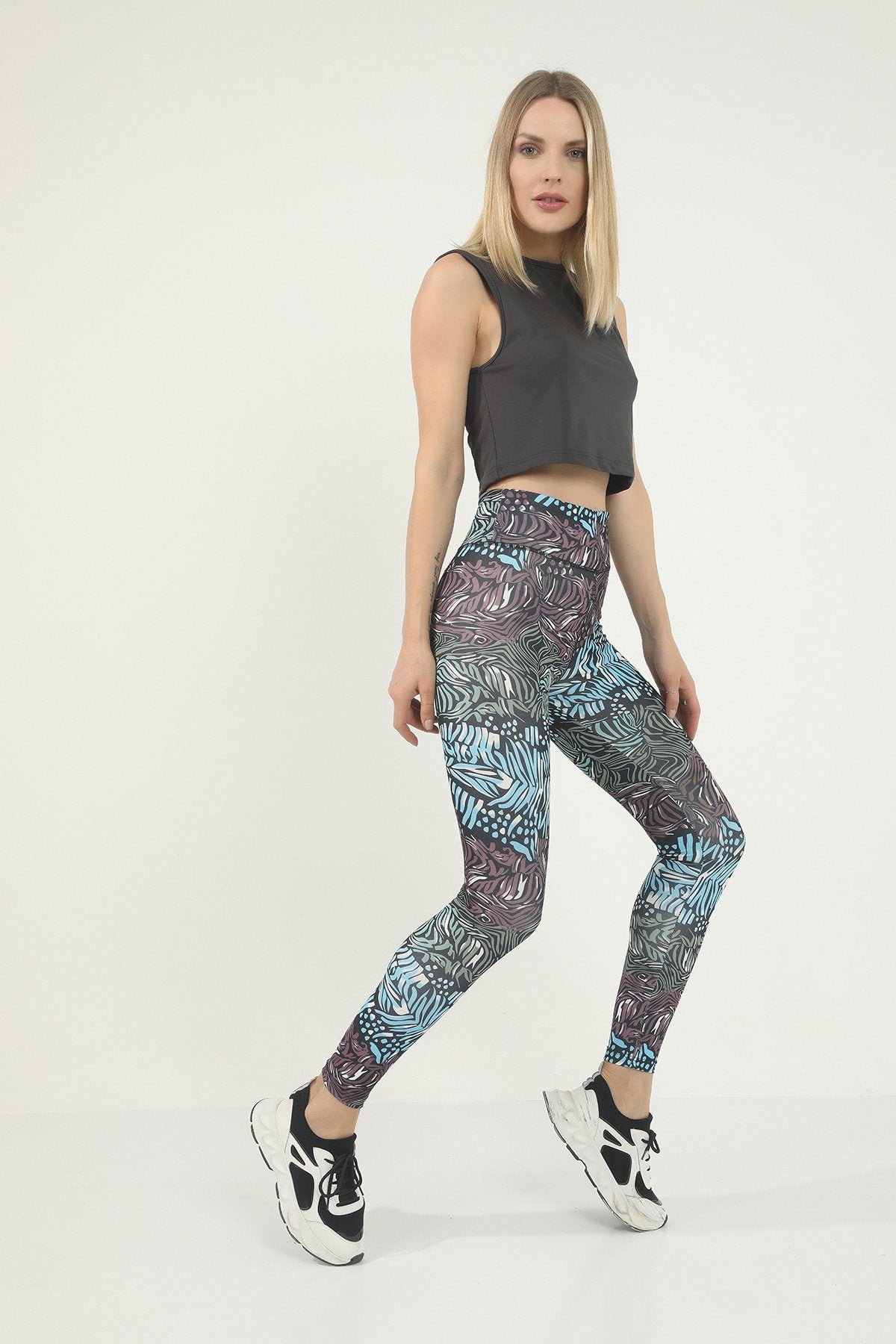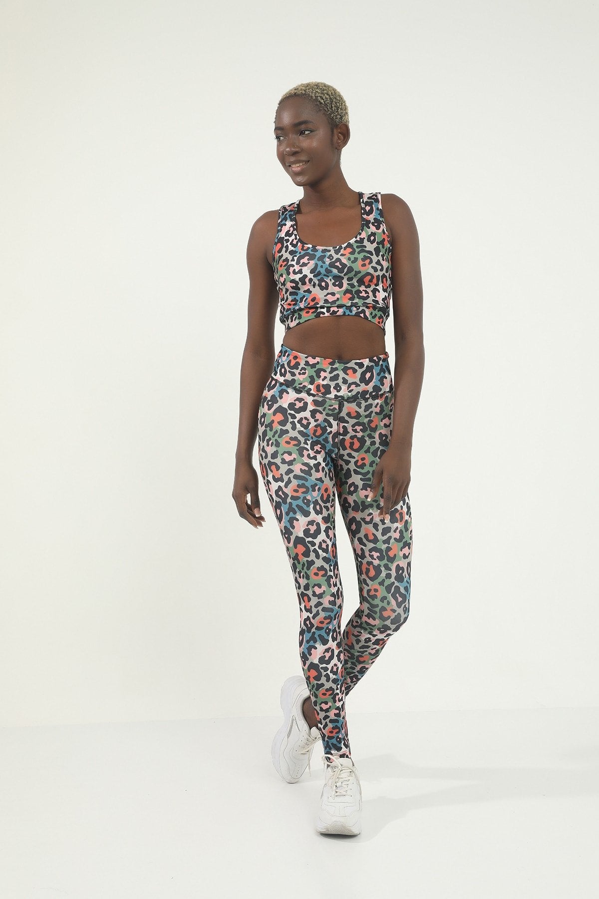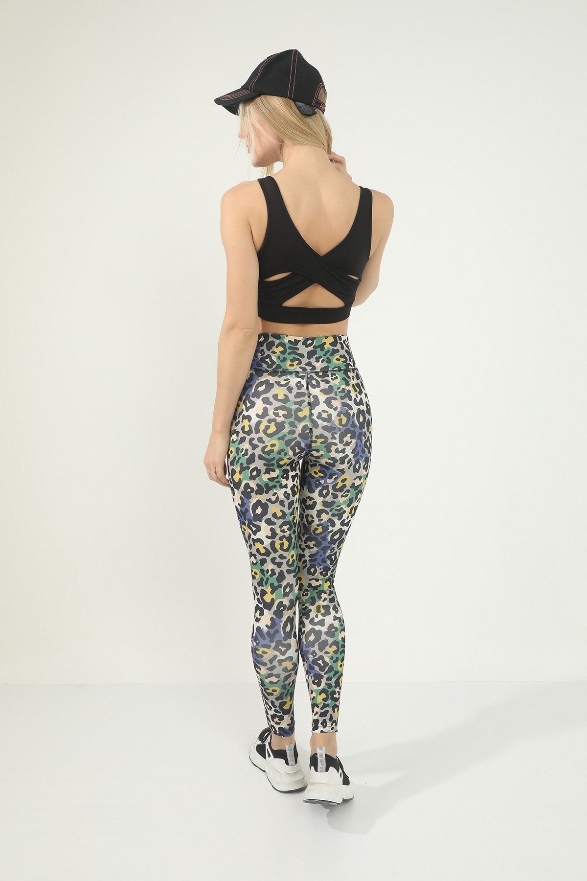 Sarı Leopar Desen Dijital Baskılı Yüksek Bel Toparlayıcı Tayt