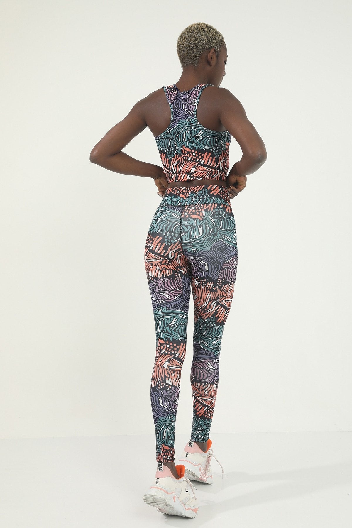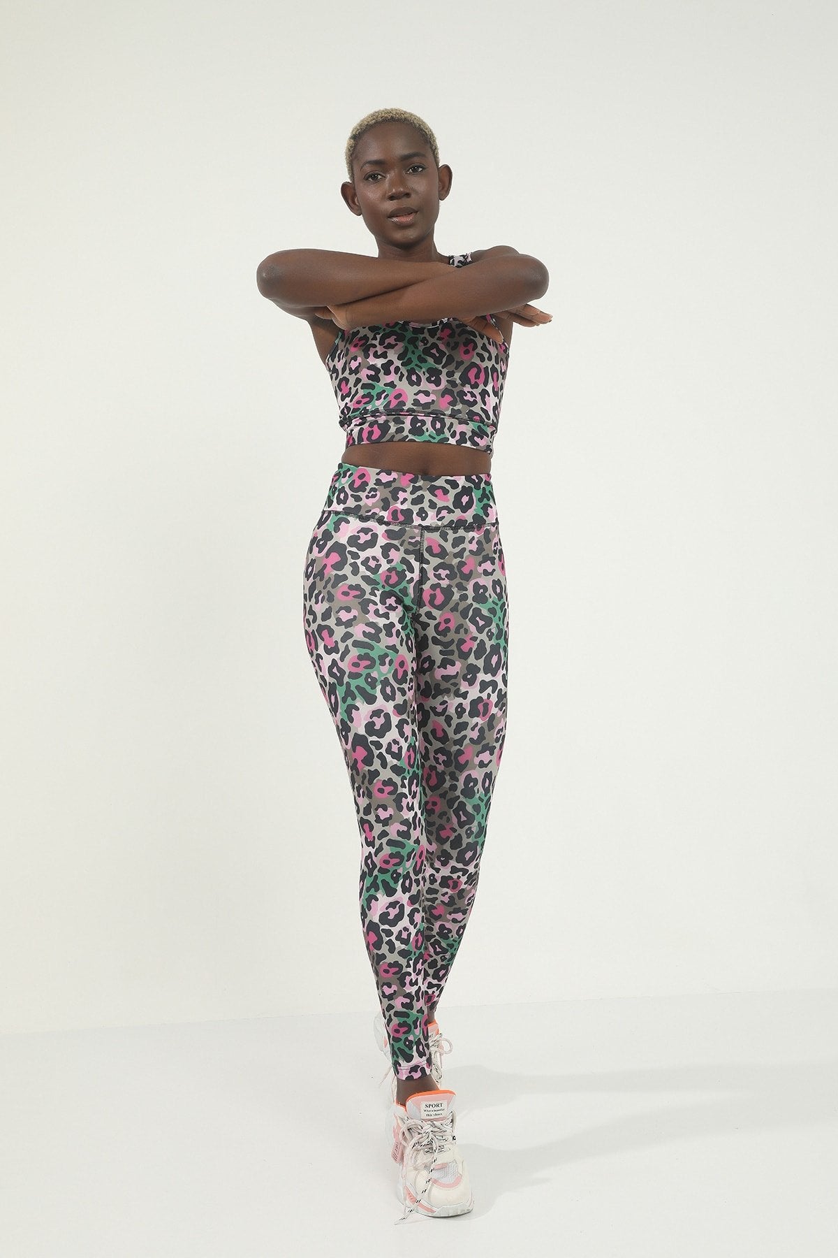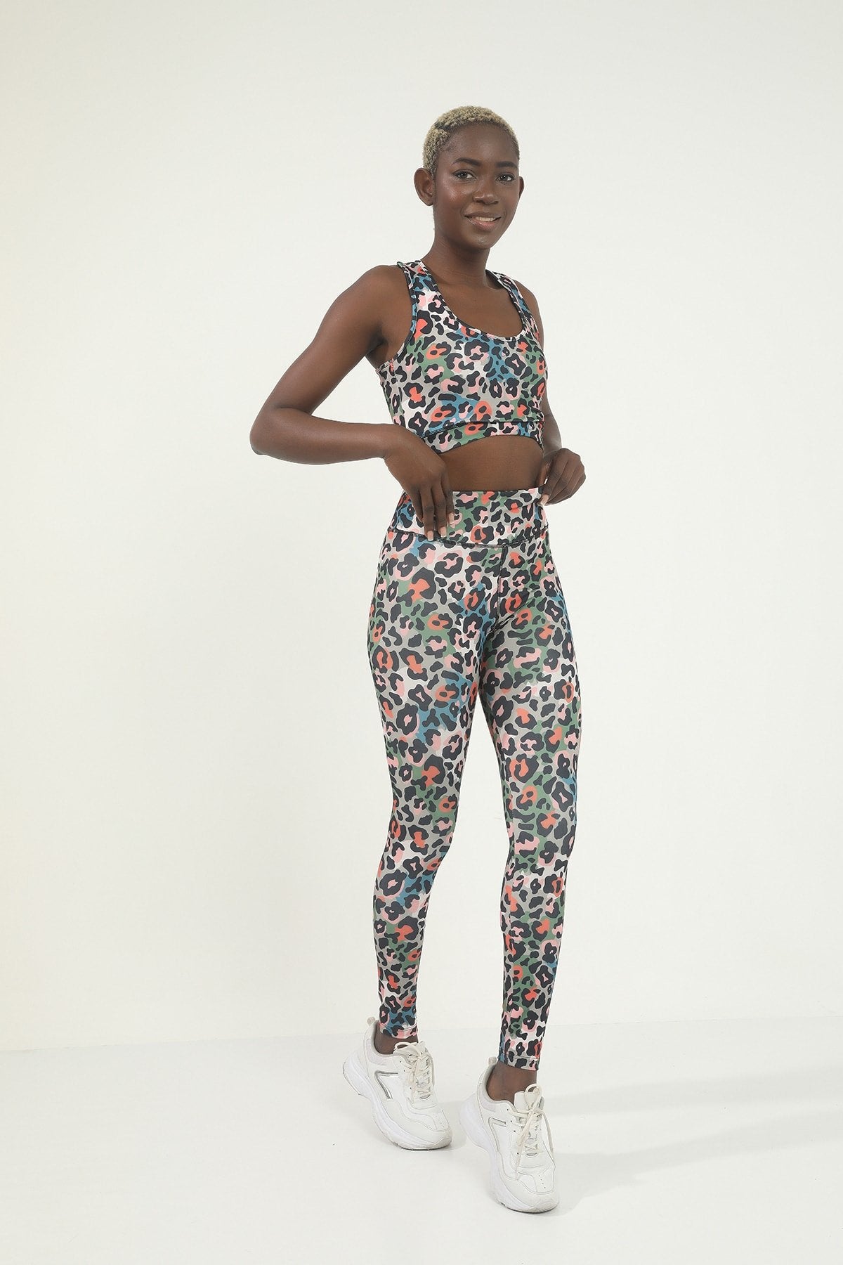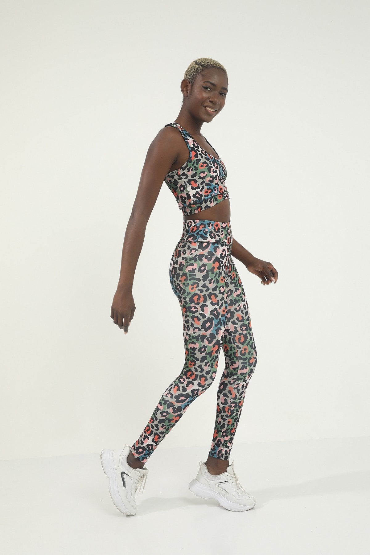 Sarı Leopar Desen Dijital Baskılı Yüksek Bel Toparlayıcı Tayt
