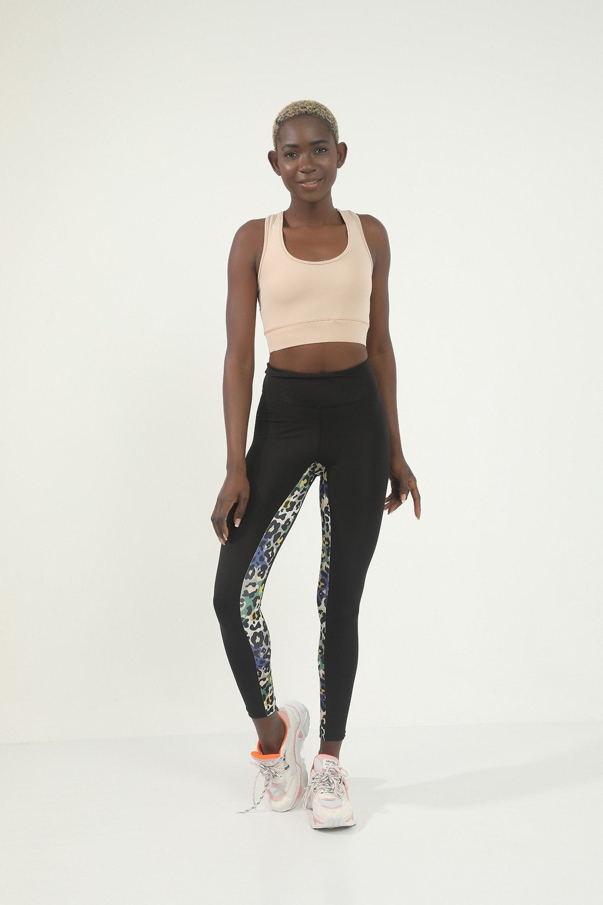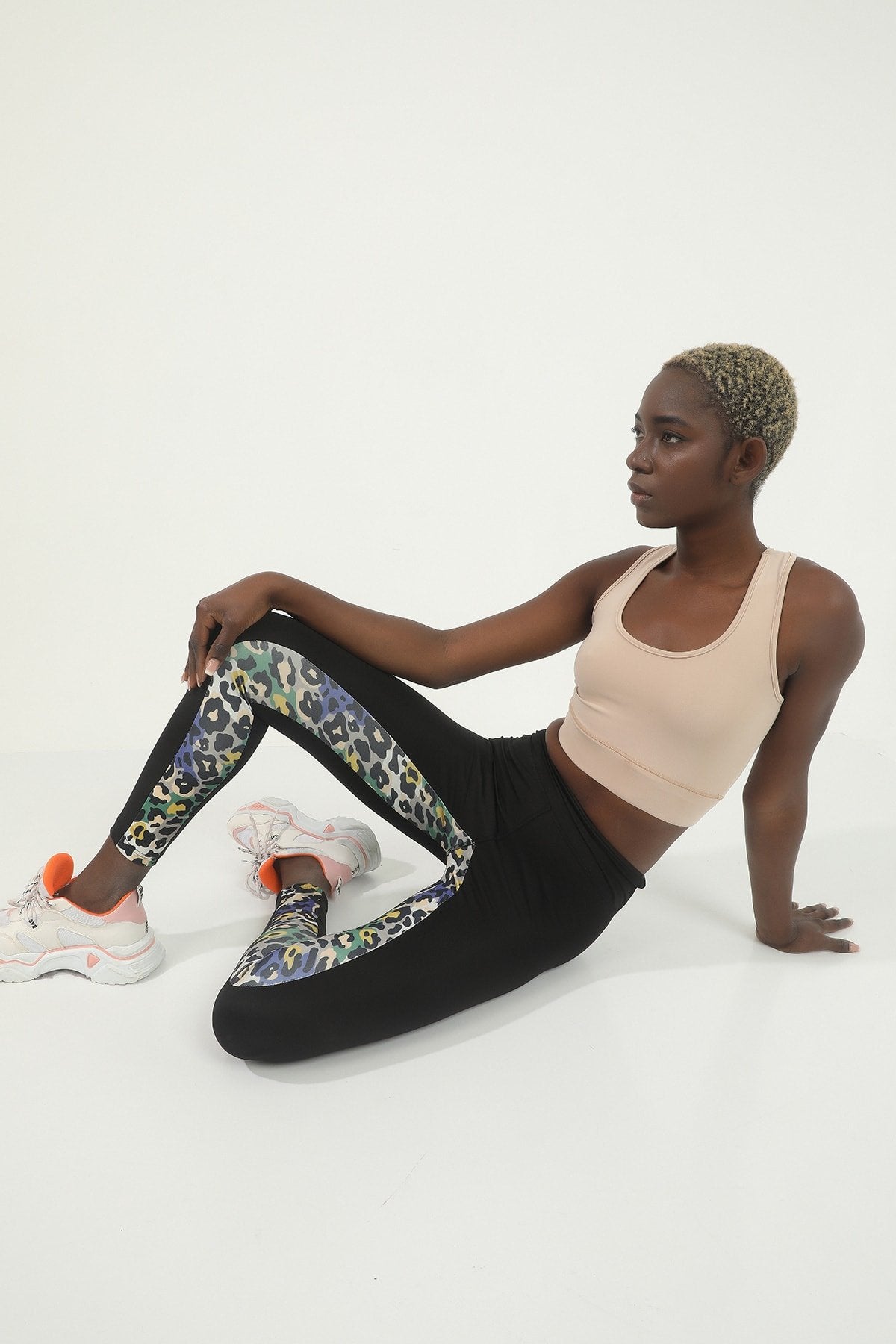 Siyah Iç Bacak Pembe Leopar Dijital Baskılı Yüksek Bel Toparlayıcı Tayt