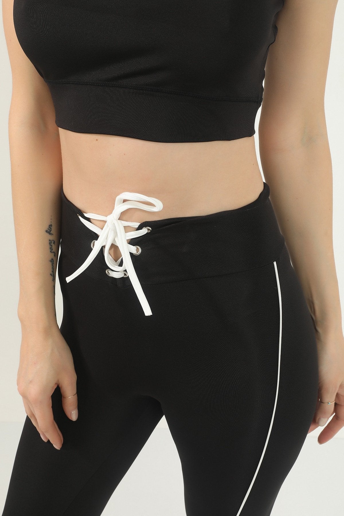 Siyah Kemerinde Kuşgözü Detaylı Fuşya Biyeli Yüksek Bel Toparlayıcı Tayt