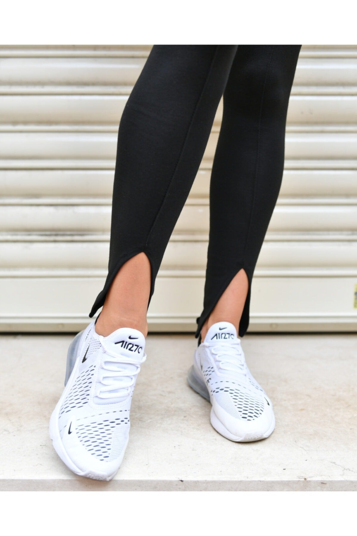Siyah Paçaları Yırtmaçlı Yüksek Bel Toparlayıcı Tayt