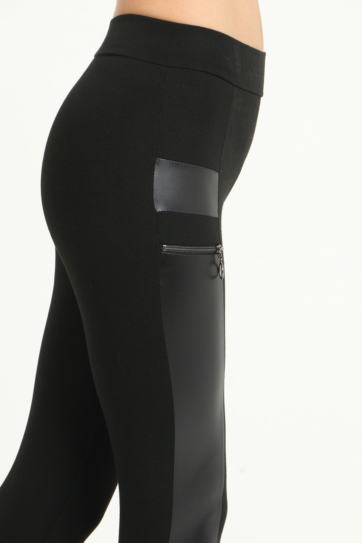 Siyah Yüksek Bel Önde Deri Ve Fermuar Detaylı Toparlayıcı Tayt