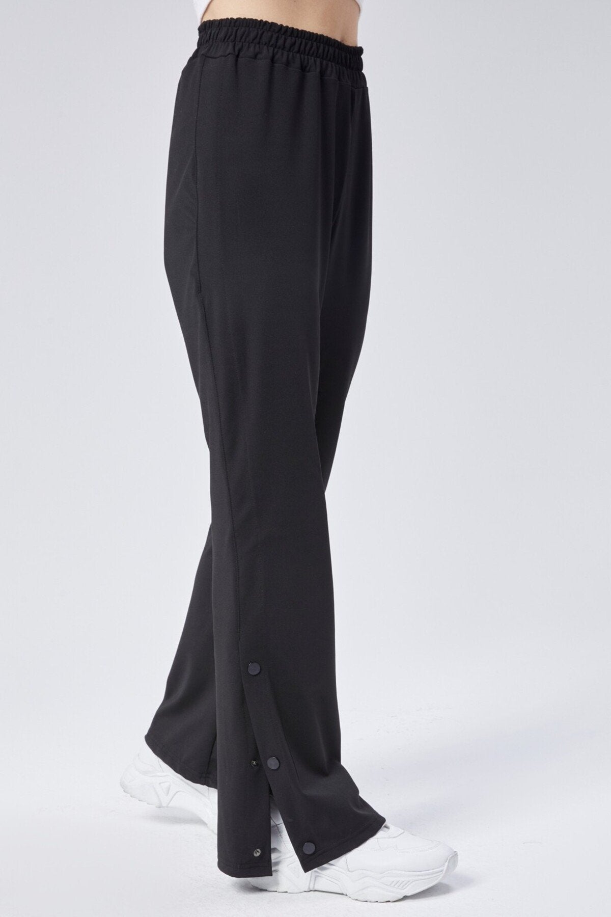 Siyah Yüksek Bel Paçası Çıtçıtlı Bol Paça Eşofman Altı