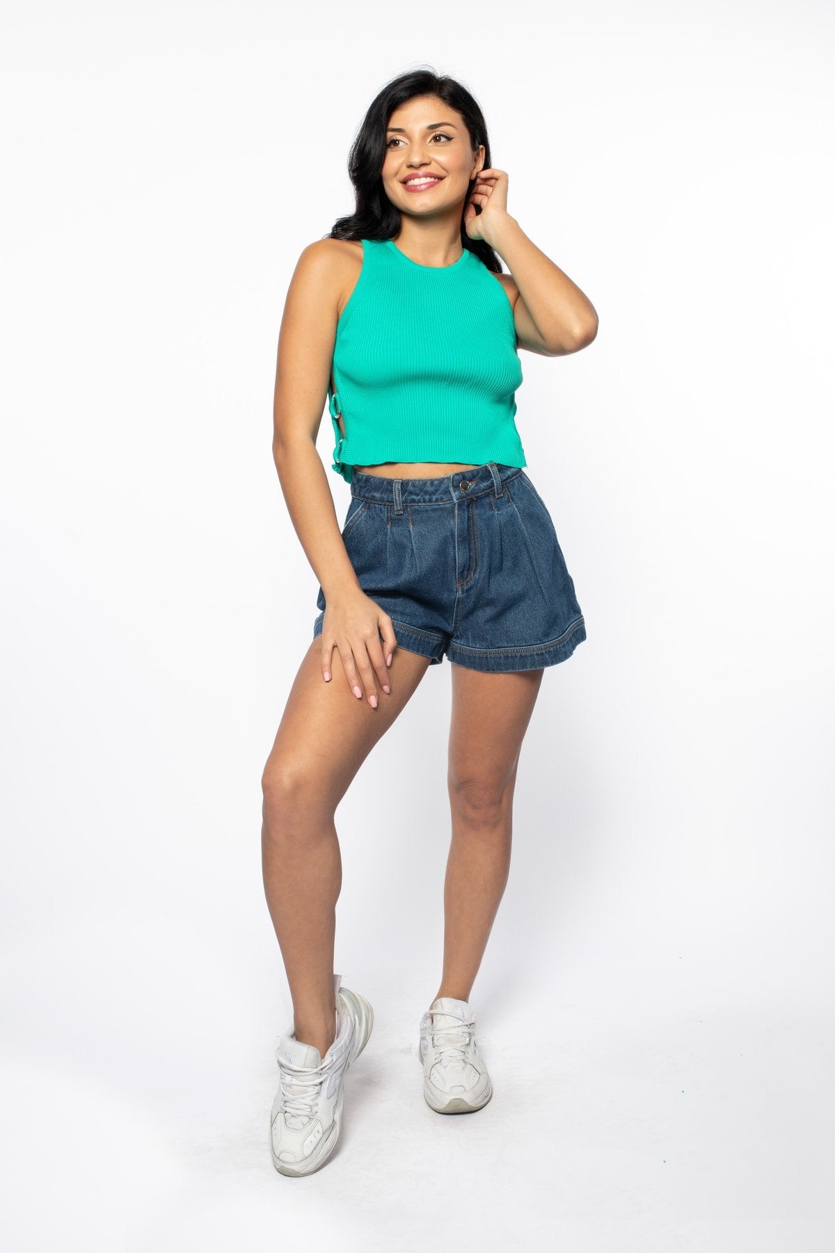 Yeşil Yanlarda Halka Aksesuar Detaylı Triko Bluz